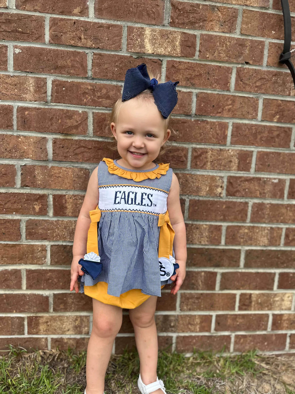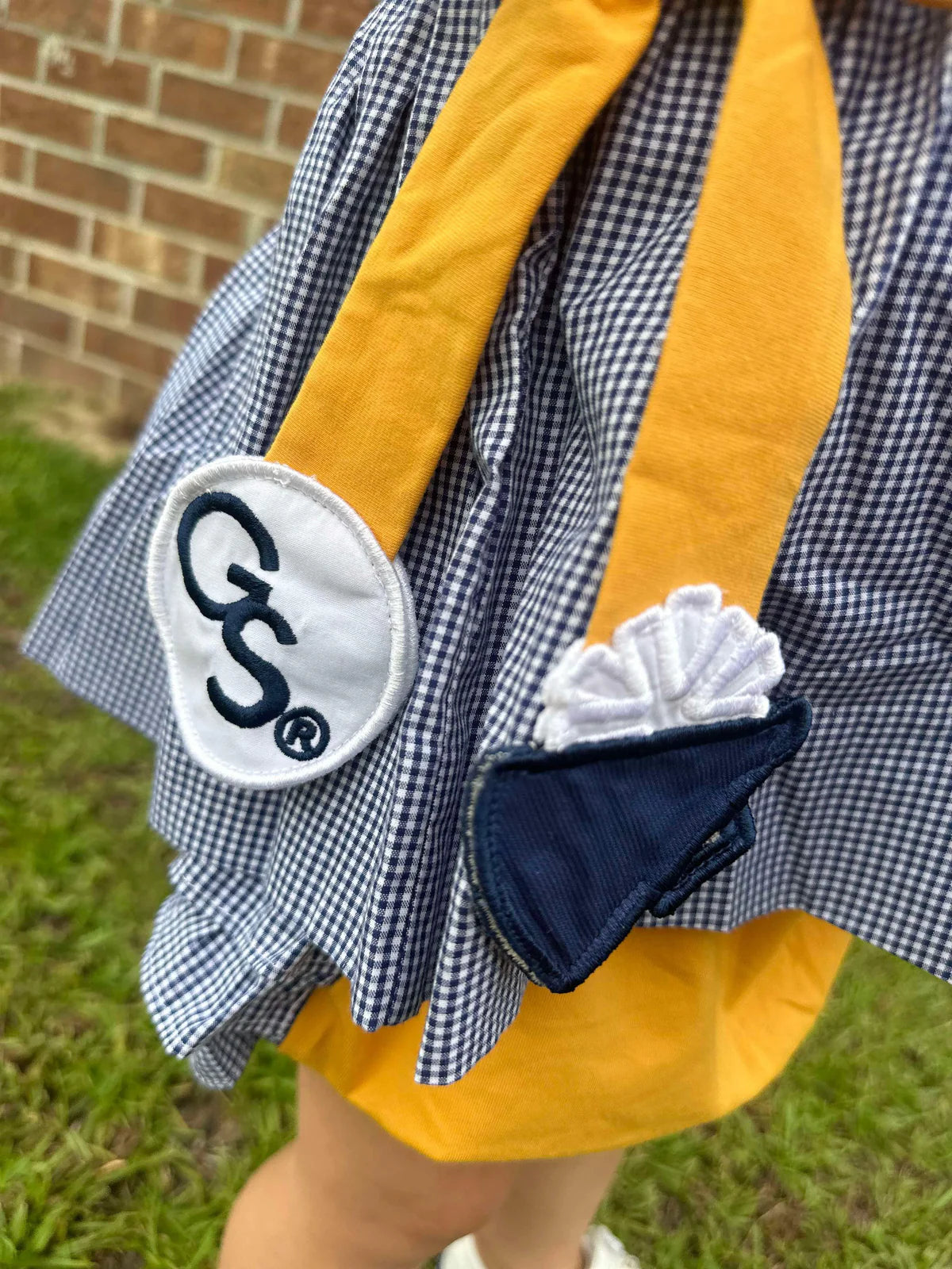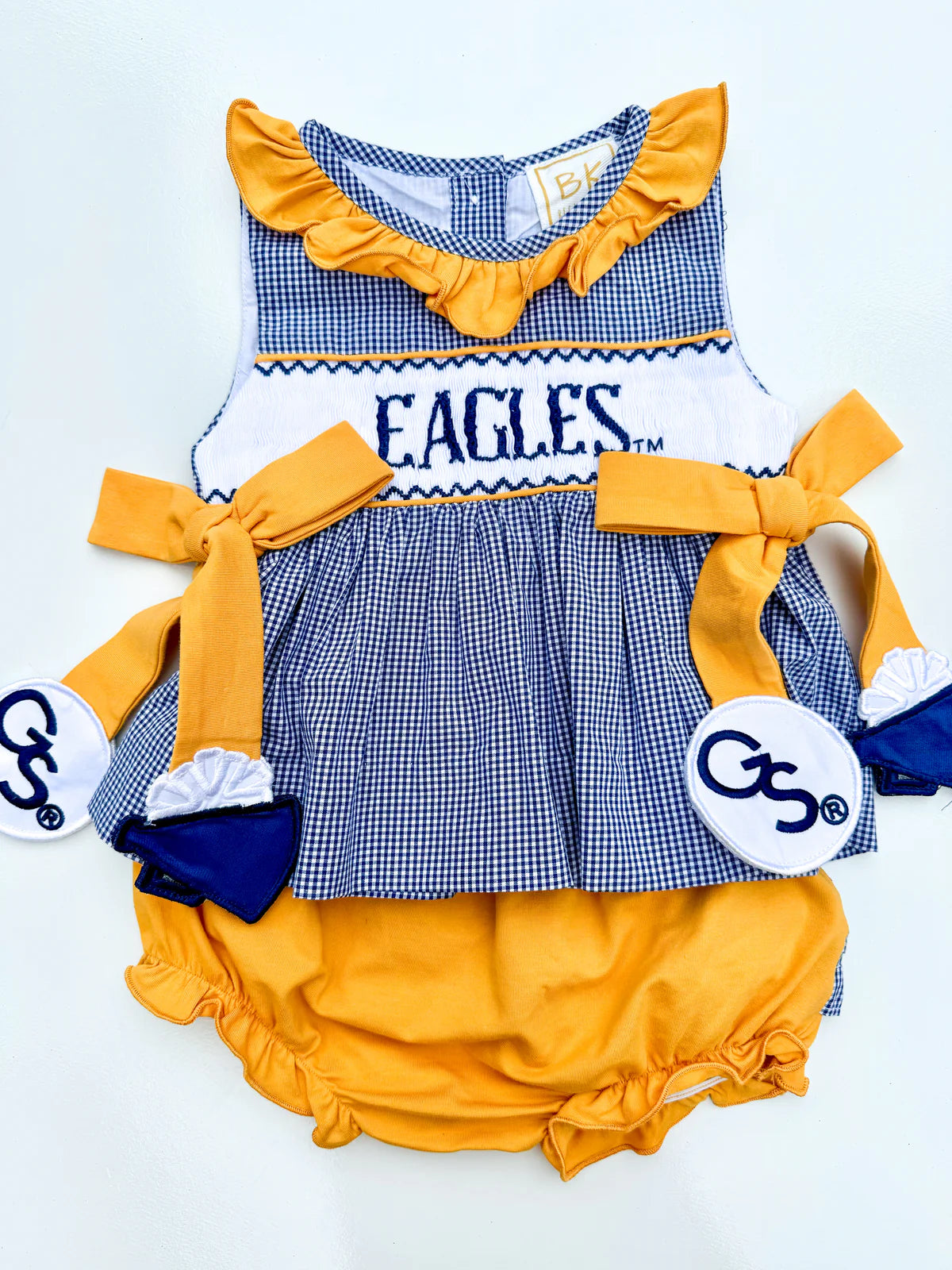 Georgia Southern Licensed and created by Melanie Wood, a GS Double Eagle, former cheerleader and longtime supporter of all things Eagle Nation! Melanie turned her True Blue passion into a custom line of hand-made line of childrens smocked clothing.