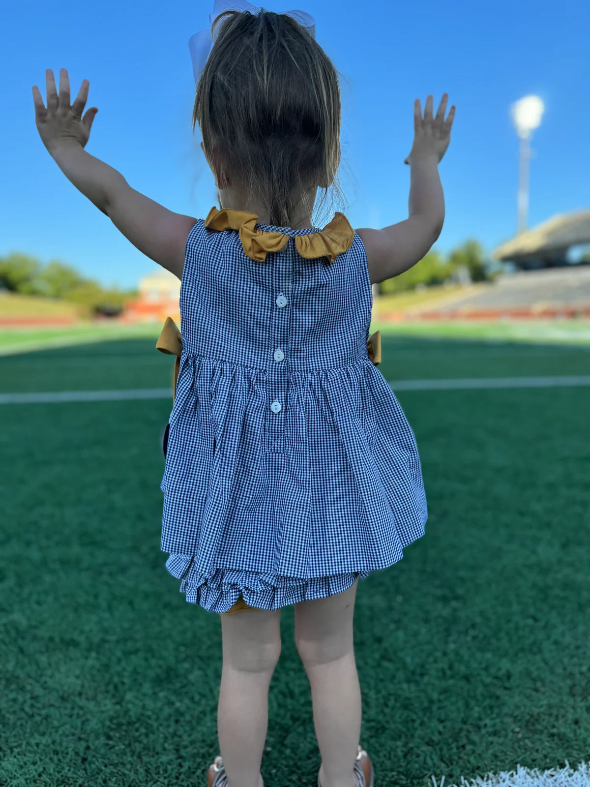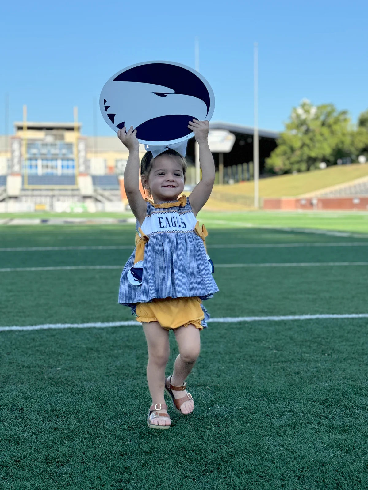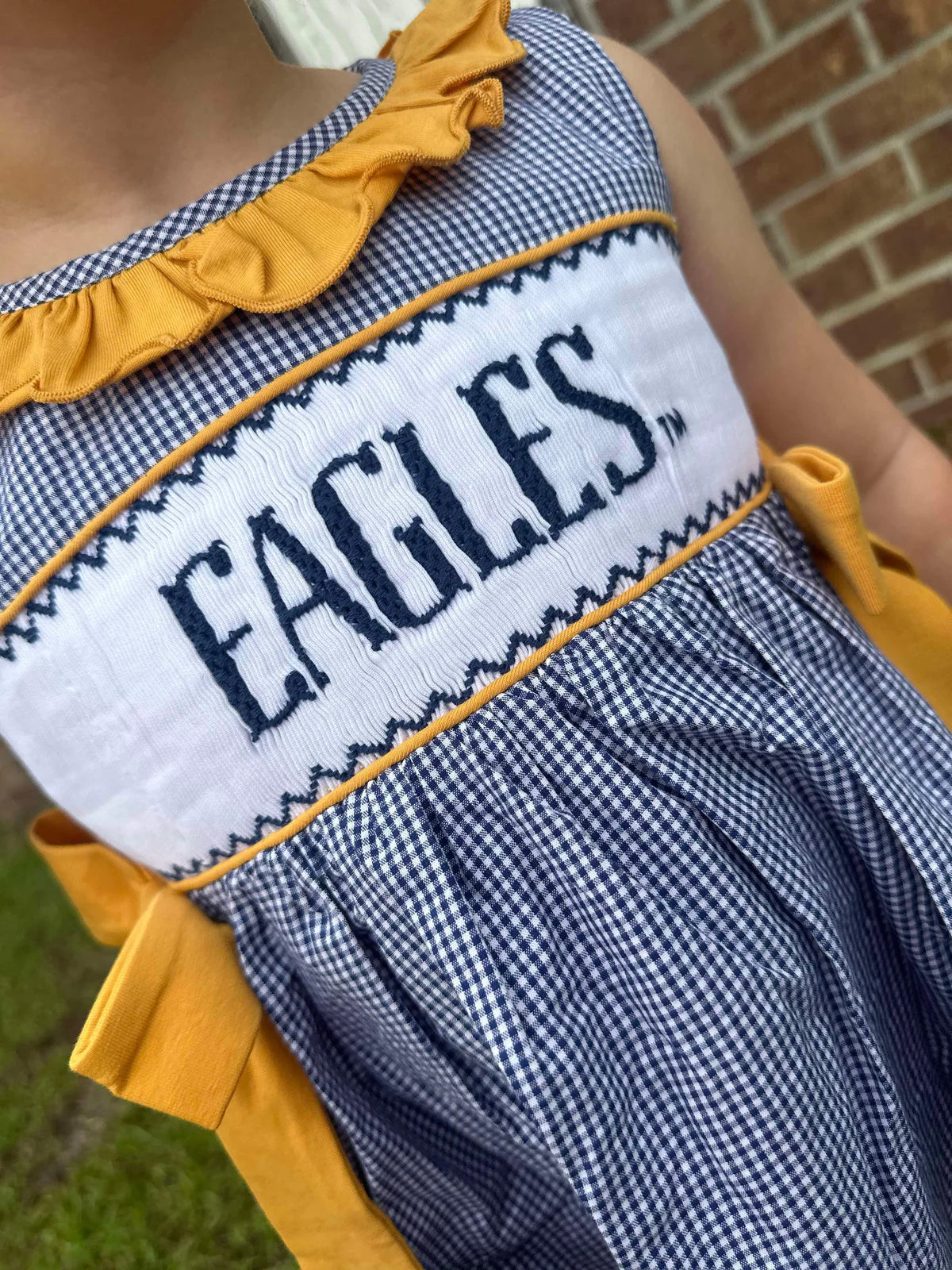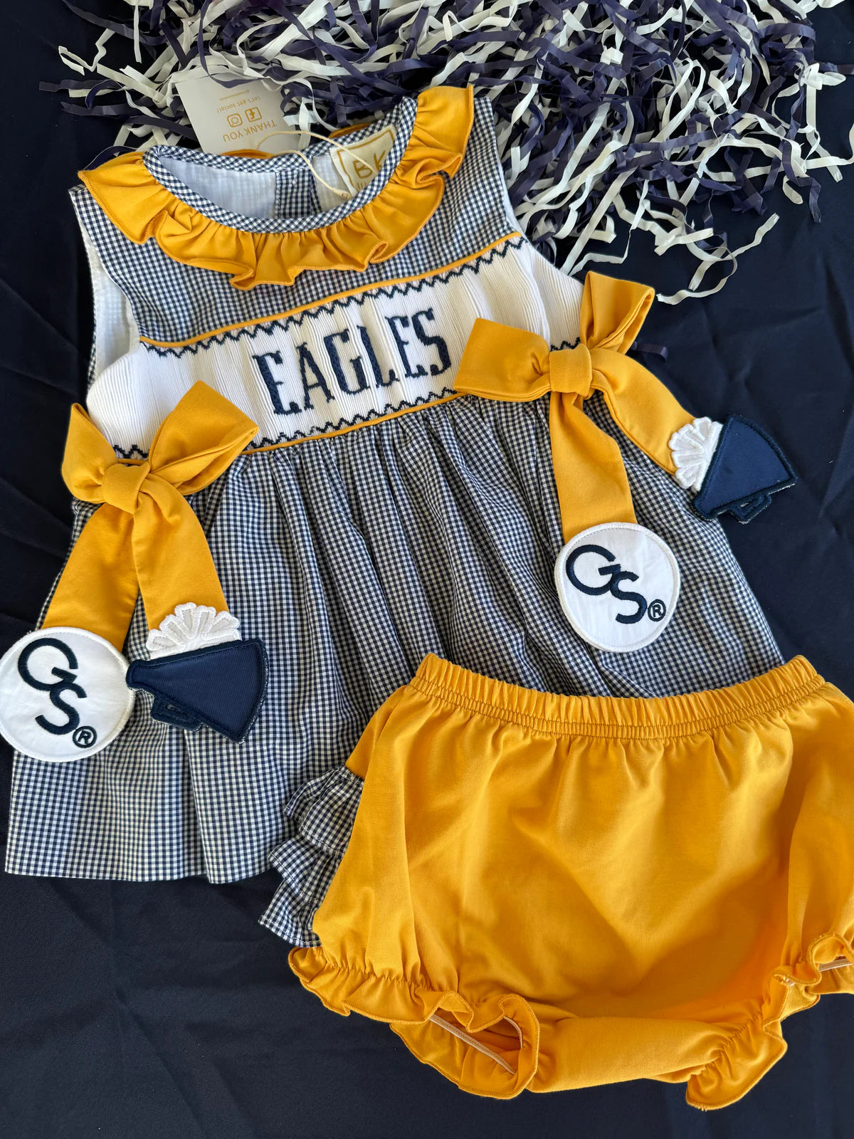 Georgia Southern Licensed and created by Melanie Wood, a GS Double Eagle, former cheerleader and longtime supporter of all things Eagle Nation! Melanie turned her True Blue passion into a custom line of hand-made line of childrens smocked clothing.
